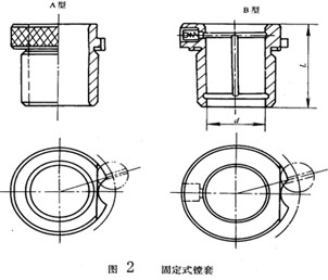 1、 固定式鏜套圖2與快換鉆套結(jié)構(gòu)相似,加工時(shí)鏜套不隨鏜桿轉(zhuǎn)動(dòng)。A型不帶油桿和油槽,靠鏜桿上開的油槽潤(rùn)滑;B型則帶油杯和沒槽,使鏜套和鏜桿之間能充分地潤(rùn)滑,從而減少鏜套的磨損。