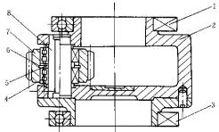 1—軸承 2—轉(zhuǎn)架 3—軸承 4—軸承 5—內(nèi)隔環(huán) 6—外隔環(huán) 7—行星輪 8—行星輪軸