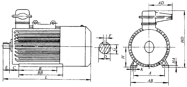 YA系列增安型三相異步電動機外形及安裝尺寸(B5)