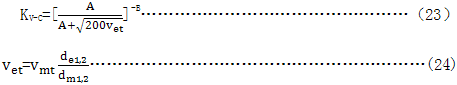 由曲線6~9與精密齒輪傳動(7.7.4.2)選擇KV-C 是基于傳動誤差(見7.4)基礎(chǔ)之上的。如果不能獲得傳動誤差,則評價齒面上的接觸斑點(diǎn)也是合理的。如果每側(cè)齒面的接觸斑點(diǎn)不一致,則齒距精度(齒距偏差)作為精度的代表數(shù)值,以確定動載系數(shù)。C是精度等級系數(shù),按GB/T10095.1給出的計算式計算。