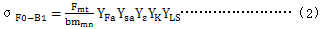 應用B2法時,用復合幾何系數(shù)YP代替計算齒根應力基本值的式(2)中的系數(shù)YFa、Ysa、Yε、YLS和YK,所以