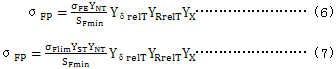 σFE——包括了應力修正系數(shù)的彎曲疲勞極限,σFP=σFlimYST,假設(shè)材料(包括熱處理)在全彈性狀態(tài)下,無缺口試件的基本彎曲強度;