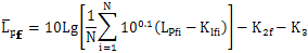 LPfi——第i測點(diǎn)的頻帶聲壓級(jí),dB;