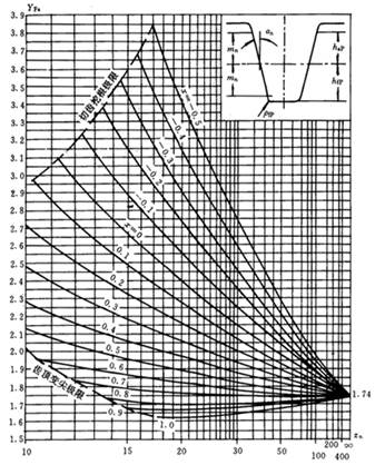 圖18a~18d的圖線適用于齒頂不縮短的齒輪。對于齒頂縮短的齒輪,實(shí)際彎曲力臂比不縮短時(shí)稍小一些,因此用以上圖線查取的值偏于安全。
