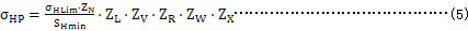 式中:σHlim——試驗(yàn)齒輪的接觸疲勞極限,N/mm2,見(jiàn)3.13.1款;