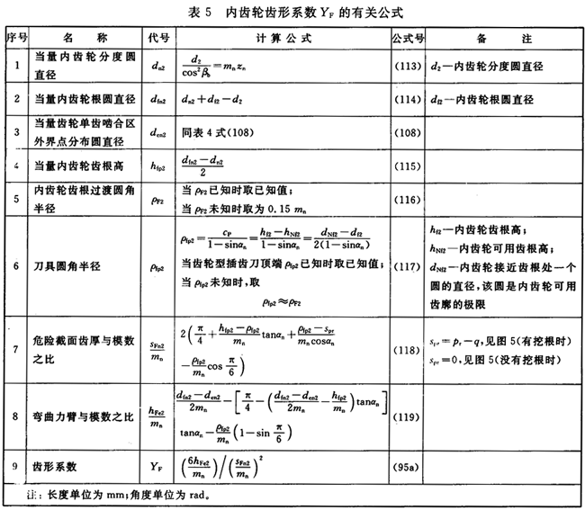 內(nèi)齒輪的YF用表5中的公式計(jì)算。