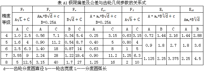 表A1極限偏差及公差與齒輪幾何參數(shù)的關系式