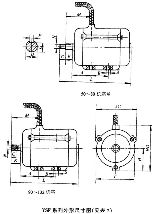 YSF系列軸流風(fēng)機(jī)專用三相異步電動(dòng)機(jī)外形及安裝尺寸 |