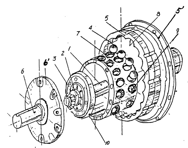 一種由固定在機架上油封軸承座內的動力或運動輸入軸(1)和軸線同輸入軸軸線共線的以差齒原理作定比運動的輸出軸(6)組成的滾道減速機,其特征是具有在赫茲接觸應力下作圓循環(huán)滾動嚙合的傳動基礎件(N)。