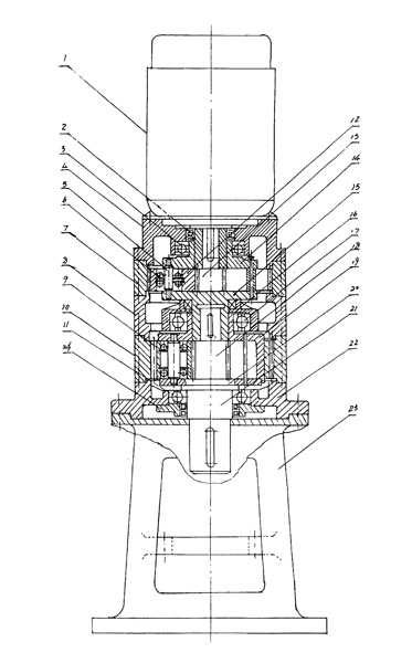 | 行星齒輪減速機(jī),包括電動(dòng)機(jī)(1)、傳動(dòng)裝置、輸出軸(21)及機(jī)座(23),其特征在于:傳動(dòng)裝置為行星齒輪傳動(dòng),電動(dòng)機(jī)(1)位于上方,與行星齒輪傳動(dòng)裝置相連,傳動(dòng)裝置與輸出軸(21)相連,輸出軸(21)與下方的機(jī)座(23)相連。 |