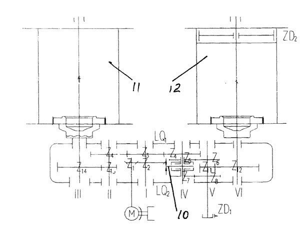 | 起升變幅減速機(jī),有驅(qū)動電機(jī)、主起升卷筒、動臂變幅卷筒,驅(qū)動電機(jī)的輸出齒輪分別與主起升卷筒、動臂變幅卷筒之間設(shè)有齒輪變速機(jī)構(gòu),驅(qū)動電機(jī)的輸出齒輪與動臂變幅卷筒之間的齒輪變速機(jī)構(gòu)還帶有同步器。省去了主起升卷筒、動臂變幅卷筒之間單獨(dú)設(shè)置的齒輪傳動機(jī)構(gòu)構(gòu)成的補(bǔ)償裝置,利用驅(qū)動電機(jī)的輸出齒輪和其分別與主起升卷筒、動臂變幅卷筒之間設(shè)置的齒輪變速機(jī)構(gòu),構(gòu)成主起升卷筒與動臂變幅卷筒之間的補(bǔ)償機(jī)構(gòu),通過起升變幅減速機(jī)的機(jī)構(gòu)互動、聯(lián)動,進(jìn)行工作動作的同時進(jìn)行了相互的補(bǔ)償。 |