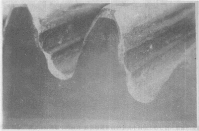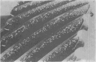 弧齒錐齒輪輪齒上的嚴(yán)重膠合。有時這種損傷引起工作溫度升高。