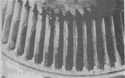 高速運轉(zhuǎn)齒輪齒面頂部的沖蝕,其部位與潤滑劑噴嘴的方向一致。