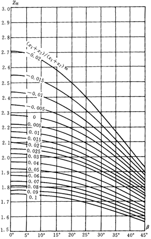 式中:zn1,zn2——小、大(斜)齒輪當(dāng)量齒數(shù)。對于內(nèi)嚙合齒輪,式中(150)中的,zn2應(yīng)取為無限大。