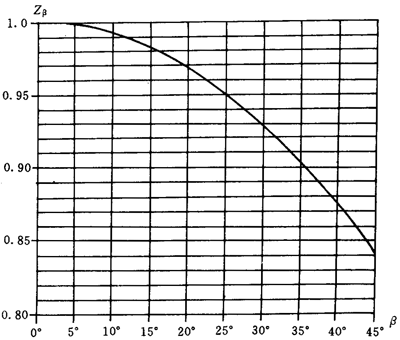 螺旋角系數(shù)Yβ也可根據(jù)β角和縱向重合度εβ由圖21查取。