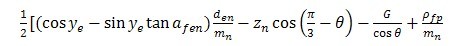 hFe——彎曲力臂。外齒輪由式(191)計算,內(nèi)齒輪由式(198)計算。