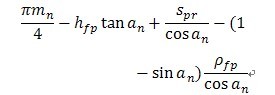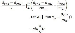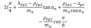 ρF——30°切線切點處曲率半徑。外齒輪由式(182)計算,內(nèi)齒輪由式(195)計算。