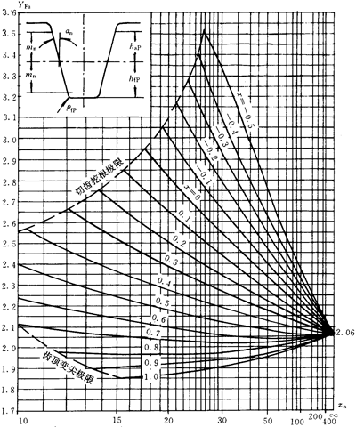 應(yīng)力修正系數(shù)Ys和Ysa是將名義彎曲應(yīng)力換算成齒根局部應(yīng)力的系數(shù)。它考慮了齒根過渡曲線處的應(yīng)力集中效應(yīng),以及彎曲應(yīng)力以外的其他應(yīng)力對齒根應(yīng)力的影響。