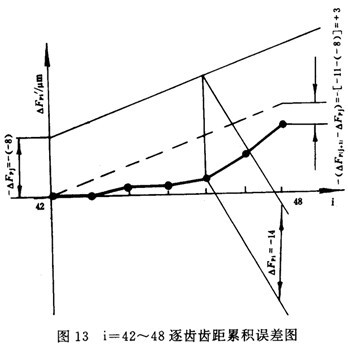 按16.1.2所述原理,測(cè)出截面整體誤差曲線或全齒寬整體誤差曲線,在該曲線上按誤差定義取出