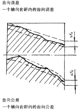 要檢查圓柱面上,在有效齒寬范圍內(nèi)(端部倒角部分除外),包容實際齒向線的兩條最近的設(shè)計齒線之間的端面距離