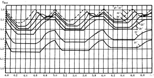 齒端系數(shù)是考慮接觸跡在齒輪端部時(shí),端面以外沒有齒根來參與承擔(dān)彎曲力矩,以致端部齒根應(yīng)力增大的影響系數(shù)。對(duì)于未修端的齒輪,YEnd值可根據(jù)εβ(εβ=b/Px)由圖8查取(當(dāng)β不是圖中值時(shí),用插值法查取)。