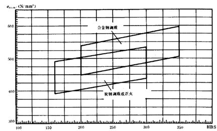 疲勞極限是指某種材料的齒輪經(jīng)長期持續(xù)的重復(fù)載荷(接觸應(yīng)力循環(huán)基數(shù)No=5×107,彎曲應(yīng)力循環(huán)基數(shù)No=3×106)作用后,輪齒保持不破壞時(shí)的極限應(yīng)力。它可由齒輪的負(fù)荷動(dòng)轉(zhuǎn)試驗(yàn)或經(jīng)驗(yàn)統(tǒng)計(jì)數(shù)據(jù)獲得。當(dāng)缺乏資料時(shí),可參考圖10和圖11,根據(jù)材料和齒面硬度取值。鑄鋼、氮化鋼和球墨鑄鐵的疲勞極限見附錄A(補(bǔ)充件)。