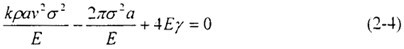 將單位面積的表面能廠(chǎng)用表示為臨界裂紋長(zhǎng)度ac的形式,經(jīng)過(guò)Berry等人的修正,得到裂紋速度的表達(dá)式: