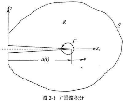 這里Γ的形狀是任意的,但必須附關(guān)于裂尖的運(yùn)動(dòng)坐標(biāo)系。這個(gè)表達(dá)式對(duì)線(xiàn)性與非線(xiàn)性的材料均適用。