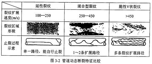 這種說法的依據(jù)是:對于前一種情況,從裂源處開始,減壓波前沿的移動速度比斷裂擴展速度更快,使得裂紋尖端的管壁應(yīng)力因減壓波的通過而不斷減小,并最終降至止裂應(yīng)力水平以下而使裂紋止裂;反之裂紋尖端的壓力不發(fā)生變化,斷裂將持續(xù)擴展,因為裂紋尖端的動態(tài)襲紋驅(qū)動力不會減小。