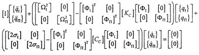 求組合系統(tǒng)的特征值及特征向量,然后可建立組合系統(tǒng)的模態(tài)模型。(不難看出,此處組合結(jié)構(gòu)整體的特征值的數(shù)目由各部件的模態(tài)數(shù)來確定,而不是由它們的結(jié)構(gòu)幾何坐標(biāo)數(shù)確定的)