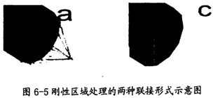 剛性區(qū)域的處理是基于小變形理論,通過這種處理,單個構(gòu)件的自由模態(tài)頻率會上升,只有通過這種處理可以在ADAMS中進(jìn)行模態(tài)疊加和模態(tài)綜合,得出系統(tǒng)的固有頻率。其處理的方法是根據(jù)構(gòu)件間的不同的運(yùn)動副連接形式,用點(diǎn)質(zhì)量單元上的節(jié)點(diǎn)(有時物體上自己的節(jié)點(diǎn)也可,不一定非要再建立質(zhì)量單元)和實(shí)體上相應(yīng)的節(jié)點(diǎn)進(jìn)行耦合,形成主節(jié)點(diǎn)和從節(jié)點(diǎn)關(guān)系,構(gòu)成剛性區(qū)域。其連接形式如圖6-5,在此圖的連接形式中,a圖的連接形式可以傳遞所有載荷形式,是一種推薦的連接方式;c圖中主節(jié)點(diǎn)僅同單個從節(jié)點(diǎn)相連傳遞的載荷形式有限,不合適選用。