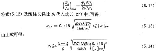 上式為根據(jù)內(nèi)齒圈與外滾子的許用接觸應力所確定的激波器半徑的取值范圍。顯然激波器半徑Tb的取值應同時滿足式(5.9)及式(5.14)的要求。