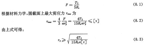 所有基本設(shè)計(jì)參數(shù)確定后,應(yīng)按軸銷(xiāo)所擔(dān)負(fù)的最大載荷來(lái)校核上面初選的軸銷(xiāo)半徑TP是否合適,根據(jù)最大剪應(yīng)力計(jì)算公式有: