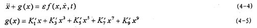 對于形如(4-4)式這樣的強(qiáng)非線性系統(tǒng),李驪提出了一種新的頻閃法,近年,杜惠英和李驪用頻閃法研究了含有x5項強(qiáng)非線性系統(tǒng)的共振解和亞諧解雖然原則上該方法可適宜和于任意階強(qiáng)非線性系統(tǒng),但是在實際應(yīng)用中對更高階項會遇到積分計算問題,大大地限制了這種方法用于高階強(qiáng)非線性系統(tǒng)的研究。為了解決積分計算的困擾,本章提出一種新的方法一頻閃一諧波平衡法。