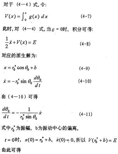 在非線性振動系統(tǒng)中,當(dāng)系統(tǒng)受到周期性外力作用的情況下,有可能產(chǎn)生三類運動,非共振運動,共振運動,由非共振運動到共振運動的過渡過程,即瞬態(tài)運動。對于共振運動來說,有三類,(l)m=n,即ω=p,這是通常所說的共振,稱為主共振,(2)n=1,ω=mp,產(chǎn)生泛音共振,當(dāng)m為奇數(shù)時,產(chǎn)生次諧波共振,(3)m=1,ω=p/n,當(dāng)n為奇數(shù)時,產(chǎn)生超諧波共振。將幕級數(shù)形式的dθ0/dt代人(4-40),并計算該式在O-2區(qū)間的定積分,可以得出結(jié)論:只有當(dāng)n=1,m=±1,±3,±5,±7,……時才可能得到(4-2)的周期解,并且(4-2)式只可能產(chǎn)生主共振解和次諧波共振解。