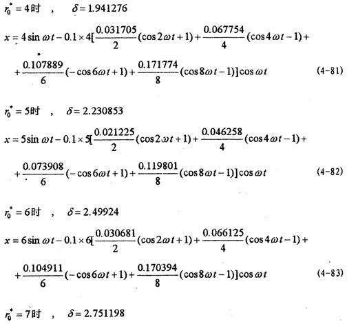 在以上工作的基礎(chǔ)上,便可根據(jù)系統(tǒng)周期解的一次表達(dá)式(4-38),得各種情況下的解析解: