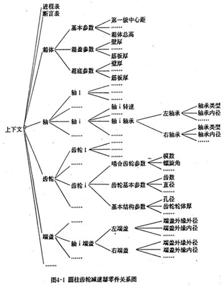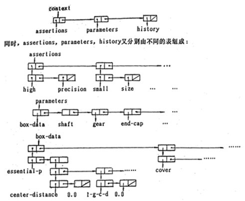 2.上下文的組成:圓柱齒輪減速器設(shè)計專家系統(tǒng)的上下文由三部分組成,它們分別是斷言表(ASSAERTIONS)、設(shè)計參數(shù)表(PARA METERAS)和進程表(HlSTORY)。