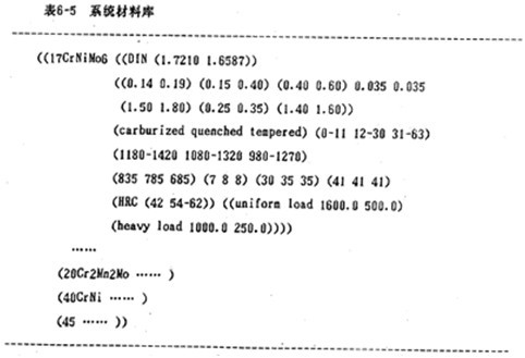 軸、箱體以及對(duì)大型組裝具輪采用的支撐部分的材料的選擇方法類(lèi)同于齒輪材料,在此不詳細(xì)討論。若當(dāng)前材料數(shù)據(jù)庫(kù)無(wú)可供選擇的材料時(shí),系統(tǒng)便要求用戶(hù)輸入指定的材料特性,并按相應(yīng)的格式加入到材料數(shù)據(jù)庫(kù),以便不斷地完善系統(tǒng)的材料庫(kù)。