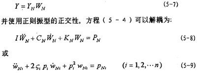 經正則坐標變換,雖然得到互不耦合的線性微分方程組(5-9),但是(5-9)式仍然不能像單自由度振動系統(tǒng)那樣求解,因為(5-9)式中的激勵力包含未知的振動位移y