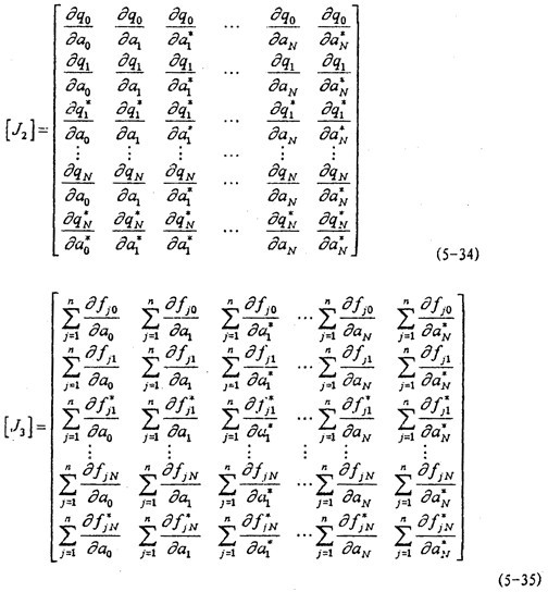 [J3]的計算實際上就是偏導數(shù) {fj({ a(k)})}/ { a(k)}的計算。計算方法與計算 {q({ a(k)})}的方法類似,故不再贅述。對于[J2],[J3]、分別有式(5-34)、(5-35)。