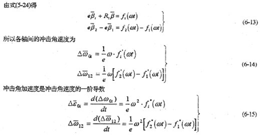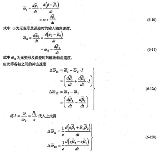 由于減速器機(jī)構(gòu)的變形及各構(gòu)件的誤差,使各傳動(dòng)軸的角速度及角加速度不再滿足條件式(6-8)及式(6-9),亦在運(yùn)轉(zhuǎn)過程中各軸之間存在角速度及角加速度的沖擊現(xiàn)象。該沖擊將直接導(dǎo)致系統(tǒng)振動(dòng),使輸出速度產(chǎn)生波動(dòng)、降低其輸出的穩(wěn)定性,并產(chǎn)生沖擊載荷。