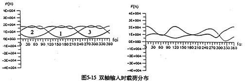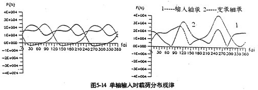 箱體軸承載荷的分布曲線如圖5-10、5-11、5-12的所示。