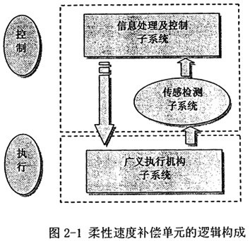 柔性速度補(bǔ)償單元由兩部分組成,包括機(jī)械運動子系統(tǒng)、信息處理及控制子系統(tǒng),其中后者又包括信息處理與控制、傳感檢測兩部分。其邏輯組成如圖2-l所示。