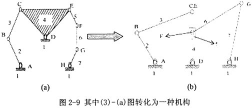 (4)具體化,將每種可行的特殊化運動鏈轉(zhuǎn)換成所對應(yīng)的機(jī)構(gòu)簡圖,以獲得可行的機(jī)構(gòu)。