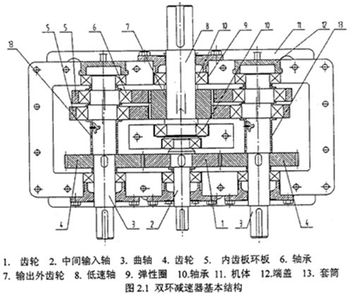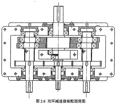 根據(jù)以上分析,本文設(shè)計了如圖2.1 所示的新型雙環(huán)減速器結(jié)構(gòu),并申請獲得了國家實(shí)用新型專利(專利號:ZL 01 2 06843.8 ),其特點(diǎn)如下: