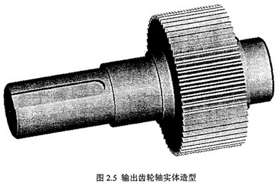 圖2.5為本文雙環(huán)減速器輸出齒輪軸實(shí)體造型圖。圖2.6為本文雙環(huán)減速器實(shí)驗(yàn)樣機(jī)的裝配圖的俯視圖。本文的雙環(huán)減速器實(shí)驗(yàn)樣機(jī),采用一種新型的環(huán)式行星傳動裝置。