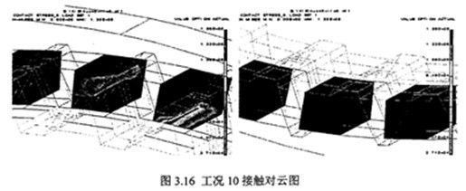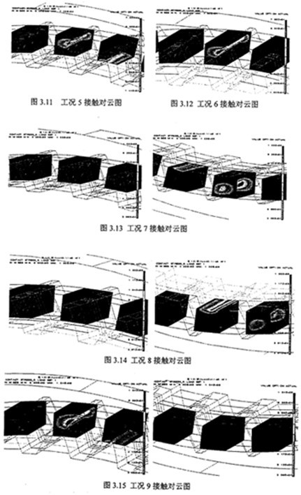 在分析誤差對直齒內(nèi)嚙合傳動重合度的影響分析的基礎(chǔ)上,考慮部分制造誤差及安裝的影響,對環(huán)板內(nèi)齒的嚙合傳動,建立了考慮誤差的環(huán)板內(nèi)齒接觸有限元模型,并按不同的誤差狀態(tài),組合成十種不同的工況,對不同的工況分別建立了有限元接觸分析計算模型,通過計算結(jié)果分析討論了誤差及載荷變化的對齒輪接觸齒對的影響,指出了因載荷不均造成的減速器振動因素。