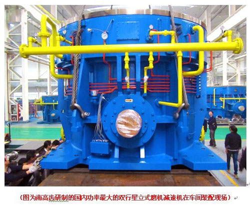 2011年11月,南京高精傳動(dòng)設(shè)備制造集團(tuán)有限公司(簡(jiǎn)稱(chēng):南高齒)子公司南京高精齒輪集團(tuán)有限公司自主研發(fā)制造的國(guó)內(nèi)功率最大的雙行星立式磨機(jī)減速機(jī)成功試車(chē)。該減速機(jī)型號(hào)為MLXSS540,輸入功率5400kW,各項(xiàng)試驗(yàn)性能優(yōu)秀,目前已交付客戶(hù)使用。此前,國(guó)內(nèi)首臺(tái)3600kW雙行星立式磨機(jī)減速機(jī)亦是由南高齒研制。