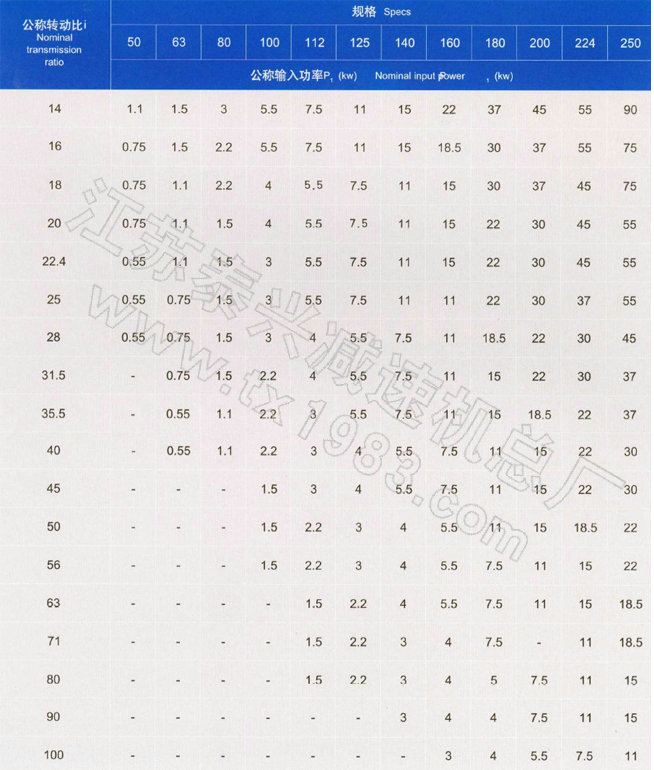 減速器的標(biāo)記代號中包括減速器型號、公稱中心距、公稱傳動比和公稱輸入功率。
