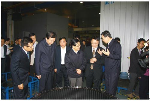 4月14日上午,在江蘇省委書(shū)記、省人大常委會(huì)主任羅志軍,江蘇省委副書(shū)記、省長(zhǎng)李學(xué)勇及省市相關(guān)部門(mén)領(lǐng)導(dǎo)陪同下,由浙江省委書(shū)記、省人大常委會(huì)主任趙洪祝率領(lǐng)的浙江省黨政代表團(tuán)來(lái)到南高齒風(fēng)電產(chǎn)業(yè)園參觀考察。集團(tuán)公司董事長(zhǎng)兼總經(jīng)理胡曰明等集團(tuán)公司領(lǐng)導(dǎo)率員工熱情接待了來(lái)賓。代表團(tuán)在參觀期間,詳細(xì)了解了南高齒生產(chǎn)研發(fā)、市場(chǎng)拓展、人才戰(zhàn)略和二次創(chuàng)業(yè)等各方面情況,對(duì)南高齒業(yè)已成為國(guó)際最大風(fēng)電裝備制造企業(yè)給予了高度評(píng)價(jià),并充分肯定了南高齒為中國(guó)先進(jìn)制造業(yè)和綠色能源產(chǎn)業(yè)發(fā)展所起到的積極貢獻(xiàn),希望南高齒在2011年能有長(zhǎng)足發(fā)展,二次創(chuàng)業(yè)工作越做越好。